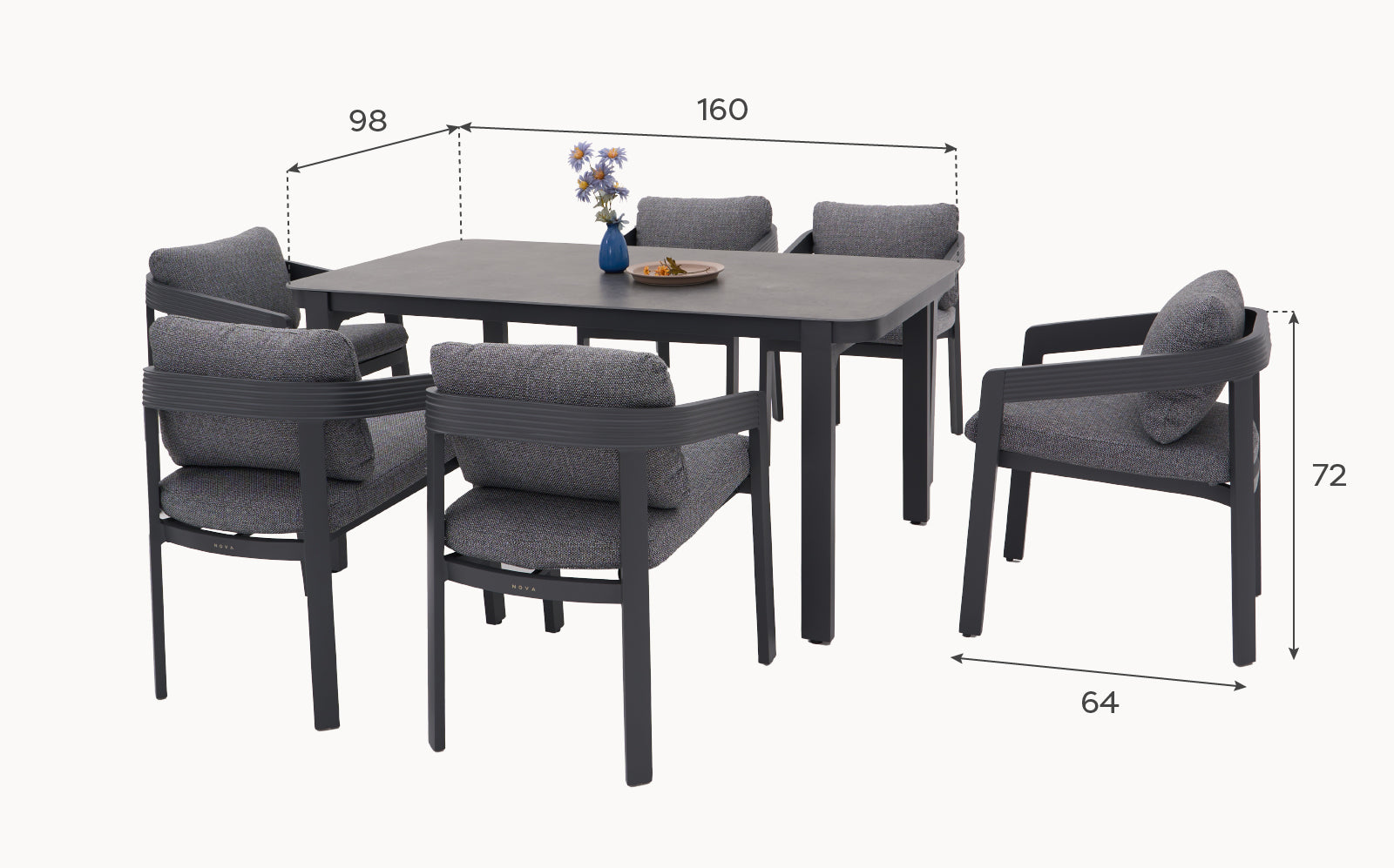 Willow 6-Seat Dining Set – Mottled Grey - 1076