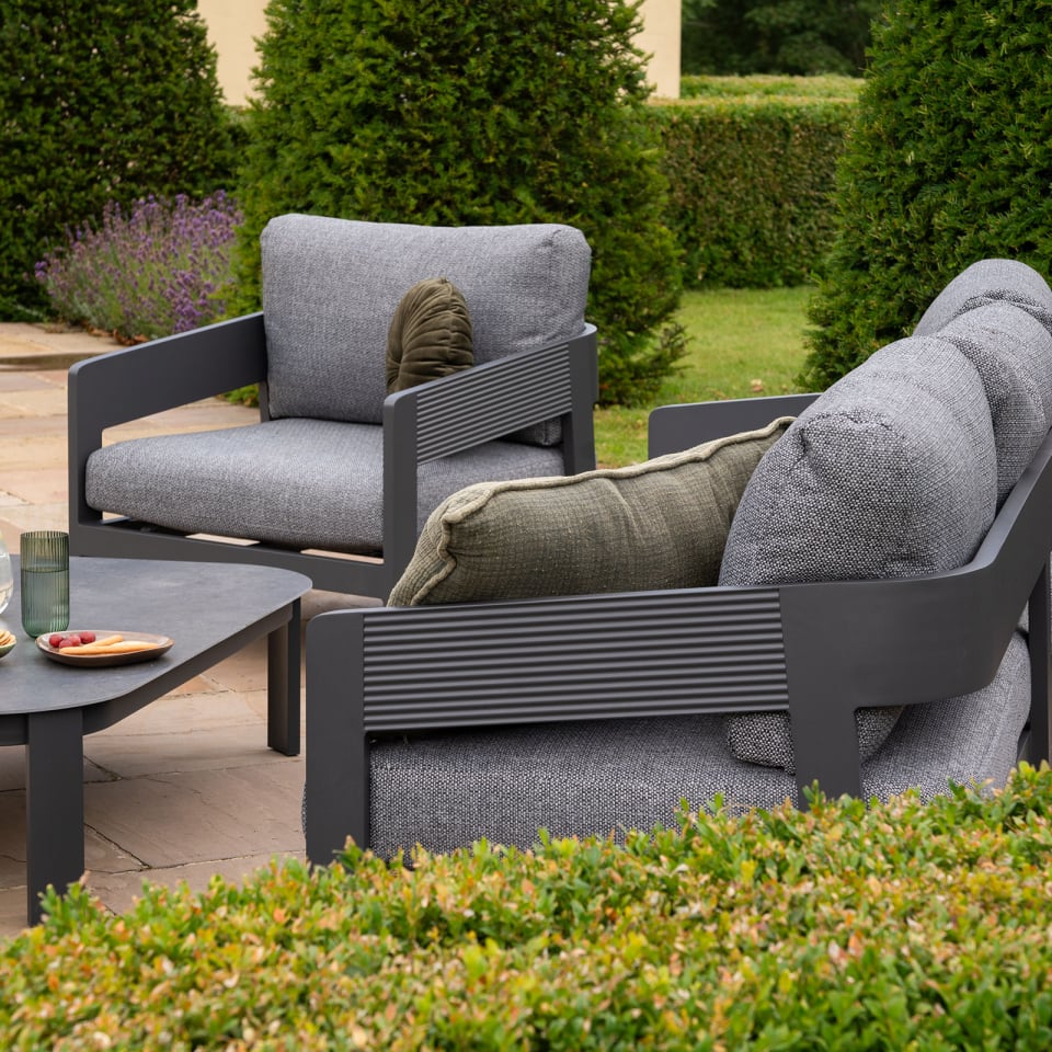 Crafted with an aluminium framework, Fern Lake is wrapped in mottled grey rattan rope. This gorgeous two-toned material adds a soft touch, effortlessly blending with both modern and suburban garden aesthetics. Imagine sinking into our cushions, designed with a te...