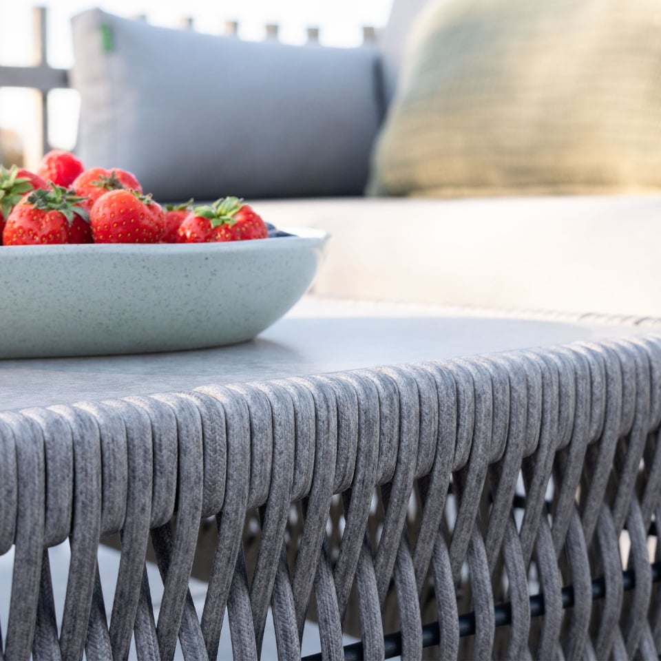 It's time to welcome the Drift Weave Rattan Aluminium Corner Sofa Lounging Set with coffee table, your ultimate companion for spending blissful days and nights outdoors. Whether you're planning a Sunday afternoon get together or lounging session under the stars, our collection has everything you need to transform your garden into a stylish setting.Crafted with an aluminium framework, Drift Weave is wrapped in mottled grey rattan rope. This gorgeous two-toned material adds a soft touch, effortlessly blending with both modern and suburban garden aesthetics. Imagine sinking into our cushions, ...