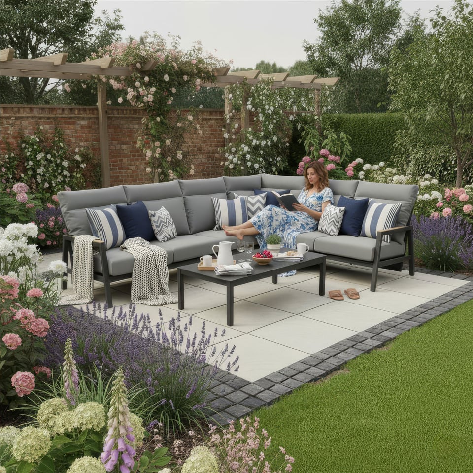 Cloud Stone All Weather Fabric Aluminium Corner Sofa Lounging Set - 1083